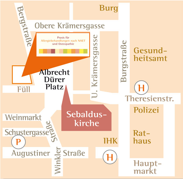 Unsere Praxis liegt im Zentrum der Sebalder Altstadt, in der Albrecht-Dürer-Platz 11,